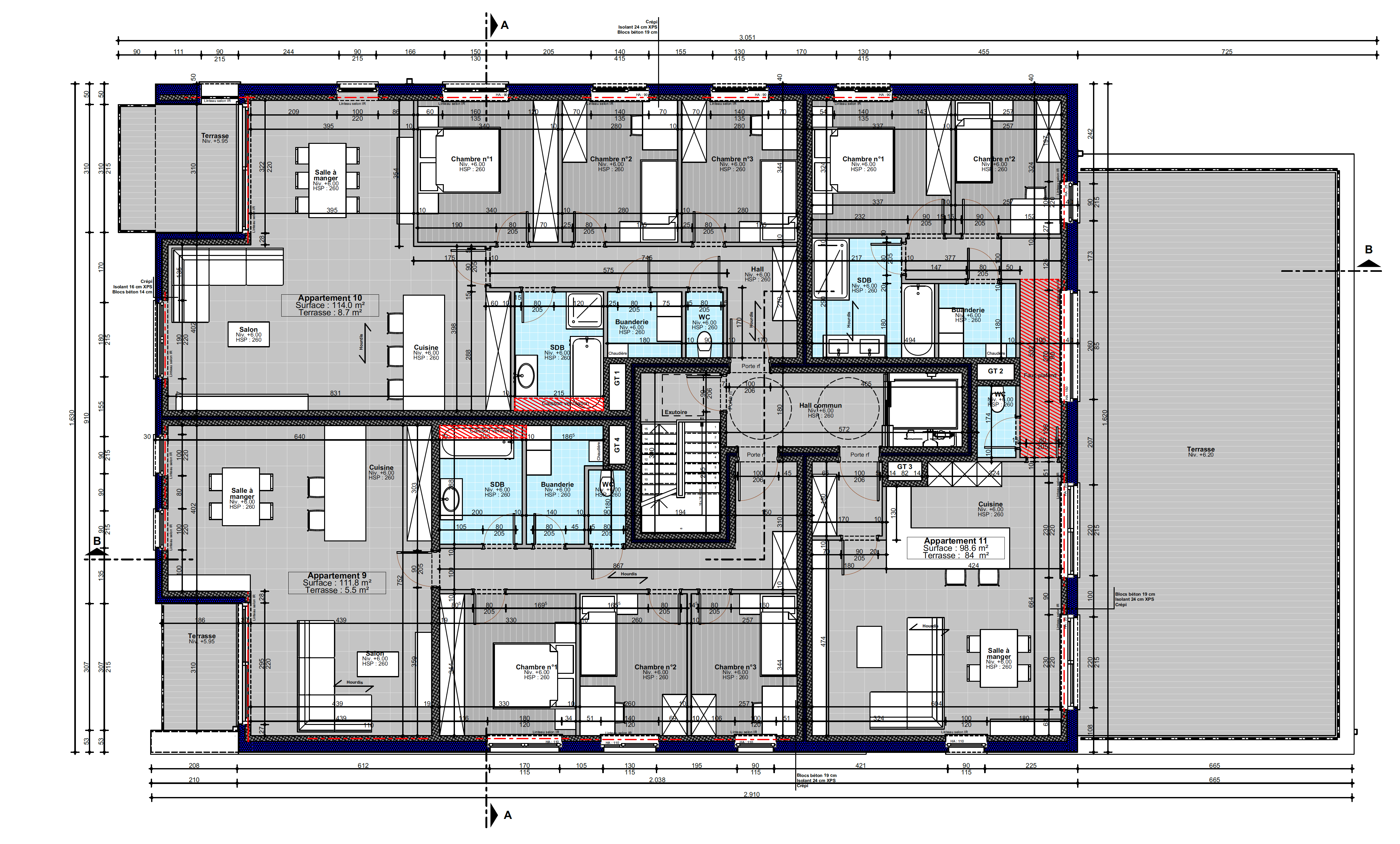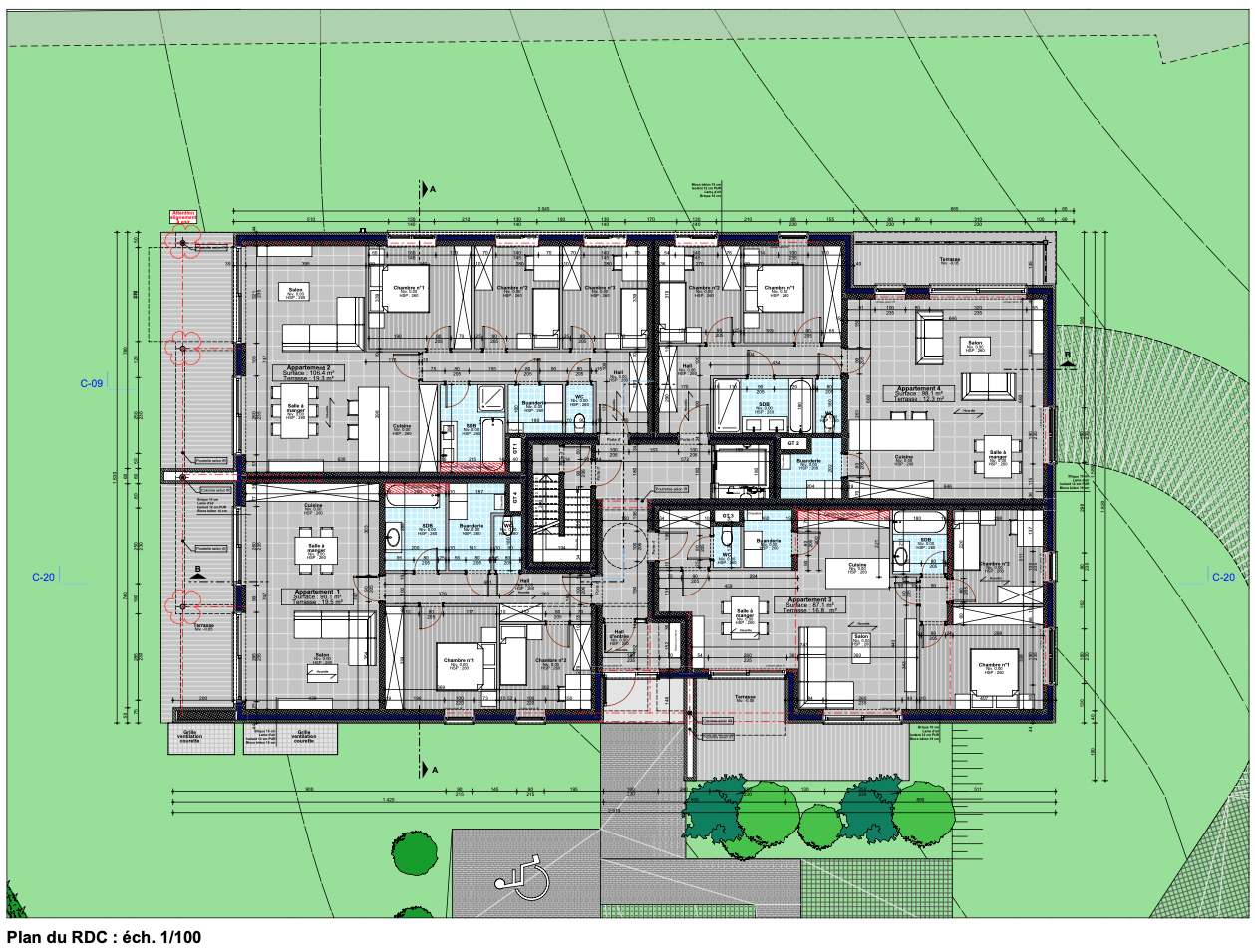 Ce projet comprend 11 appartements neufs. Les appartements, variant entre 80 et 110m2, offrent des configurations de 2 ou 3 chambres, avec terrasse et/ou jardin, cave et garages/emplacements, tout en garantissant confort et qualité de vie.